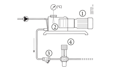 2) miejsce pomiary temperatury – w miarę możliwości należy dobrać zawór z czujnikiem oddalonym, zatem AVTA lub WVTS, umieszczonym w takim miejscu w instalacji, gdzie temperatura czynnika chłodzącego jest najważniejsza, a jeśli to niemożliwe, można zastosować zawór z czujnikiem wbudowanym (FJVA).