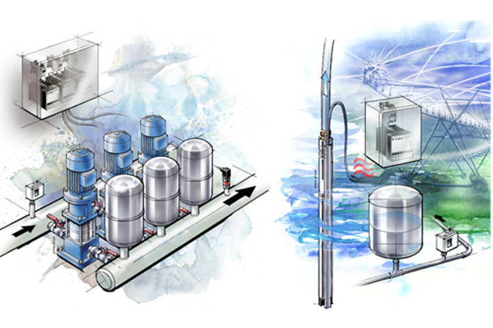 - Sygnał z przetwornika ciśnienia pozwala na stabilizację ciśnienia w instalacji (sterowanie pracą falownika), ale również dzięki odpowiedniemu algorytmowi może skutecznie zabezpieczać przed suchobiegiem Przetworniki ciśnienia MBS 3000